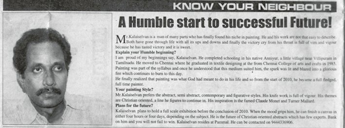 K.Kalaiselvan - A man of many parts who has finally found his niche in painting.